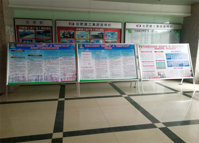 為切實增強(qiáng)全員安全生產(chǎn)意識和提升全員安全素質(zhì),合肥建工制作了“安全生產(chǎn)月”暨“安全生產(chǎn)建工行”宣傳展板在本部一樓大廳進(jìn)行宣傳展示,各項目部在工程顯著位置張貼、懸掛“安全生產(chǎn)月”宣傳標(biāo)語、橫幅、掛圖等,同時利用 LED 屏宣傳,在LED電子顯示屏上持續(xù)滾動播放安全公益廣告等,積極營造關(guān)心安全生產(chǎn)、參與安全發(fā)展的濃厚輿論氛圍。
