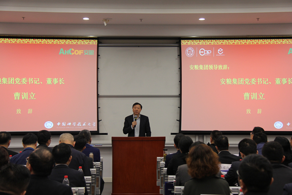 2020年10月30日,中國(guó)科學(xué)技術(shù)大學(xué)—安糧集團(tuán)EDP、MBA研修班在中國(guó)科學(xué)技術(shù)大學(xué)國(guó)際金融研究院隆重開班,安糧集團(tuán)董事長(zhǎng)曹訓(xùn)立和中科大管理學(xué)院黨委副書記芮鋒分別致辭。