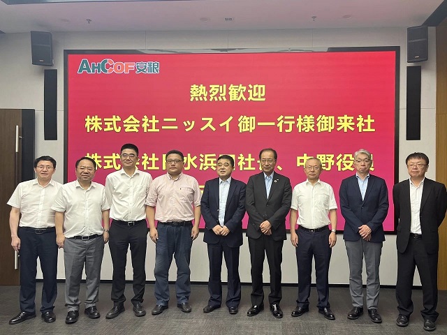 7月2日,日水浜田社長一行在安糧集團(tuán)總裁楊曉剛陪同下,抵達(dá)安糧實(shí)業(yè)直屬工廠——巢湖嘉誼食品有限公司(以下簡稱“巢湖嘉誼”)進(jìn)行訪問。座談會(huì)上雙方圍繞著良好的合作歷史、目前合作業(yè)務(wù)開展情況以及未來合作發(fā)展方向等議題深入交流,希望借助日水品牌的全球影響力,充分發(fā)揮日水創(chuàng)新研發(fā)技術(shù)優(yōu)勢和安糧制造優(yōu)勢,不斷推出特色新產(chǎn)品開拓國內(nèi)外市場。會(huì)上,楊曉剛表示未來安糧食品產(chǎn)業(yè)園規(guī)劃專設(shè)日水產(chǎn)品業(yè)務(wù)板塊,希望可以在日水產(chǎn)品進(jìn)口、日水技術(shù)安糧加工、開發(fā)中國市場方面進(jìn)行全方位合作,推動(dòng)雙方友好合作再上新臺(tái)階。隨后,日水浜田社長一行參觀了工廠的生產(chǎn)車間,工廠負(fù)責(zé)人重點(diǎn)介紹了安糧旗下兩家日水合作工廠巢湖嘉誼和安慶嘉潤吸收合并、業(yè)務(wù)整合及相關(guān)工廠改造具體情況,同時(shí)詳細(xì)介紹了日水產(chǎn)品生產(chǎn)全過程,各工序嚴(yán)格的品質(zhì)控制得到了日水一行的肯定。