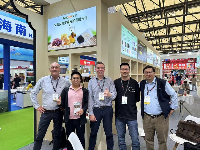 (業(yè)務(wù)人員在展會期間與澳大利亞果干協(xié)會主席洽談合影)